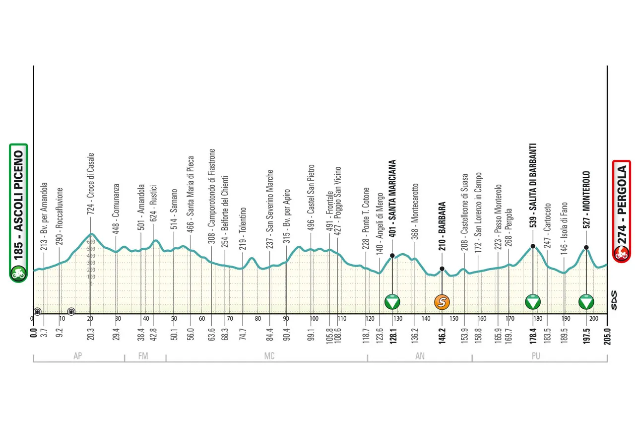 5. etape: Ascoli Piceno - Pergola, 205 kilometer